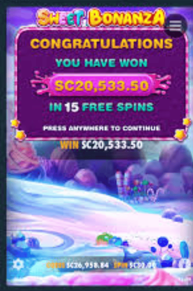 Sounds too good to be true? That's what Emily Miller from Tulsa, thought but 5 minutes and 17 spins later, she won the “Sweet Bonanza” Jackpot winning 20,533.50 Sweep Coins which she could exchange for $20,533.50